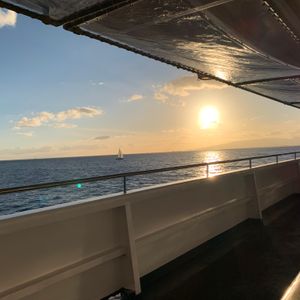 The atmosphere was amazing! Looked very high end and it felt like it. Staff was very friendly and had great service. Super romantic dinner cruise that I highly recommend to any couple looking for a unique Hawai’i experience. Food was really good, not the biggest portions, but still we left satisfied. I will say whatever the dessert was, wasn’t very good. The only negative. It was this fruit flavored cake but it tasted like dish soap. Other than that this is a must!! Beautiful scenery and nice cool breeze with excellent food and live entertainment! We did pay for the middle tier I believe so it was the four course meal with two drink tickets. I think anyone would love this.