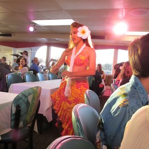 出航したら、キャプテンの乾杯の挨拶、ダンサーによるフラを見ることができます!しばらく食事を楽しんで、本来ならサンセットを外で見ることができたのかもしれませんが、当日は雨の為見ることは出来ませんでした。ただその分ゆっくり食事をして、後半にはジャズを聴きながら楽しむことができました!雨と強風のせいかわかりませんが少し船は揺れてました(・・;)船酔いする方は気をつけた方がいいかもしれません!お手洗いはとても広く綺麗でした!