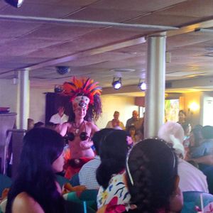本当にコスパの良いオプショナルツアーでした。ハワイで一度はルアウショーを観たいと思っていましたが、どれも結構なお値段が。。。スターオブホノルル号ではお手頃なお値段で、1.クルージング 2.サンセット 3.ナイトビュー 4.ディナー 5.ショー鑑賞 6.参加型ダンス体験(レッスンあり) 7.ガラ・パーティー 8.花火鑑賞(土曜日だったので) の8つを同時に楽しむことができました。