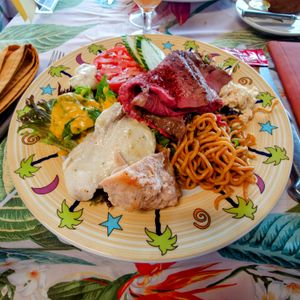 料理もたくさんあって美味しく、最高のディナークルーズでした!ローストビーフはかなりレアと焼いてくれる2種類を選べました。また写真撮影もとてもスムーズにして頂いて大満足です!