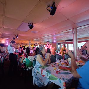 1番リーズナブルなビュッフェコースを選びましたが、コース別で船のフロアが分かれており、上のフロアは帰港の最後まで盛り上がってました。