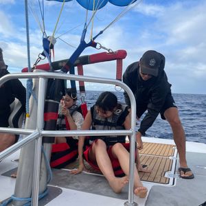 It's our second time with this parasailing company, and once again, they delivered a thrilling adventure beyond our expectations! We did this with my girls when they were 9 and 11 years old, and my son, who was only 4 years old, could not join us at the time. But now, my girls are 18 and 16, and my son has turned 11 years old, and this time, he's finally able to join on the fun with us! We're thrilled to have the whole family together for this incredible experience.