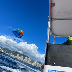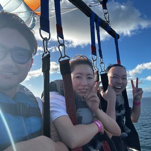 After our children became adults, we took a trip to Hawaii as a couple for the first time in over 20 years. We wanted to do something memorable, so we signed up for parasailing. Although I felt a bit scared, the weather was great on the day of the activity, and once we were up in the air, it was stable and we enjoyed the refreshing breeze while taking in the stunning views of Honolulu. At the end, we had the usual splash in the sea, but they also check in advance how much you'll be submerged, which was very reassuring. I would love to do it again the next time we visit Hawaii.
