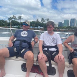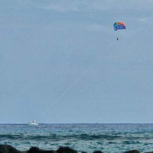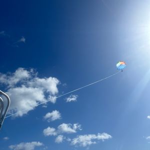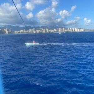 I've been to Hawaii several times, but this was my first time parasailing. The meeting place was easy to find, and the staff at the reception were friendly. Along with the captain and crew, we set off with other foreign tourists. We were the first ones to go parasailing among the passengers. Not knowing what to expect, we quickly ascended into the sky! Despite being a bit scared, I was captivated by the beautiful scenery. It felt like we were taking a stroll in the air over Hawaii, even feeling a little bit of turbulence along the way. Although it lasted only about 10 minutes, I was satisfied with the thrill and breathtaking views that you can't experience in everyday life. At first, I was too nervous, so I would love to go again with a calmer mindset. I wonder when my next trip to Hawaii will be...