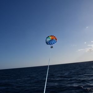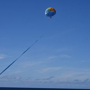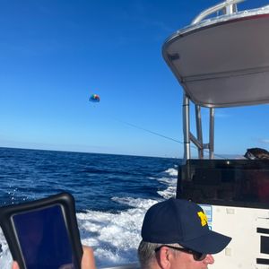 My first parasailing experience. I was nervous, but once I was up, the view was breathtaking. It was over in no time. If you get seasick, you should be careful.
