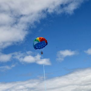 親子3人でパラセイリングに申し込みました。2人でしか飛べないと思っていたのですが、3人一緒飛ぶことができたのでとても良い思い出になりました。飛んでいる最中はとても静かで、風が心地よかったです。