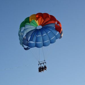 I participated with my mother in her 50s. A few days ago, my sister and her husband who went parasailing warned us, "Be careful, you might get really seasick!" However, our boat ride was relatively smooth, so we didn't have to worry about seasickness. There was some slight turbulence in the air, but it was not scary at all; it felt like we were flying. I held a waterproof instant camera while flying, and it didn't interfere with taking pictures at all.
