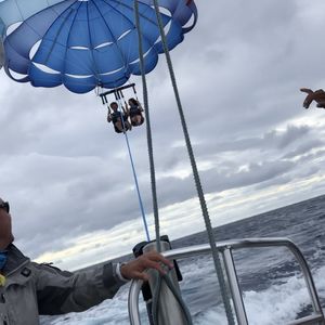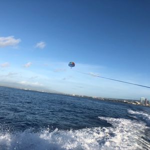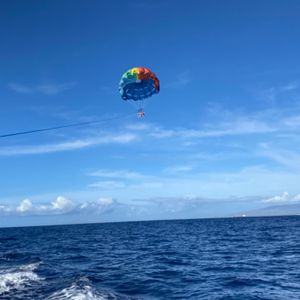 初めてのパラセイリングで緊張しましたが、楽しかったです!一緒に乗ったお客さんの中に日本人は誰もいなかったですが、いい人ばかりでみんなたくさん話かけてくれました。150メートルを選んで、パラセイリング自体は爽快でよかったのですが、そのスポットに行くまでけっこう長い時間ボートに乗って、そのボートがめちゃくちゃ揺れてそっちの方が怖かったです。