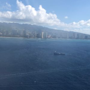 天気も良かったので地平線が続く海とホテルが集まったリゾート地区、ダイアモンドヘッドまでしっかり見ることができました。