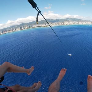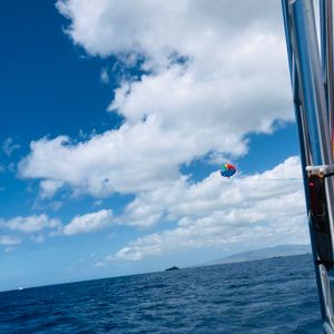 My husband and I participated together. It was both of our first time parasailing, and we were nervous, but once we tried it, we talked about how glad we were to be flying (o^^o). It was such a great experience, so I highly recommend it as a memory of Hawaii! ☆