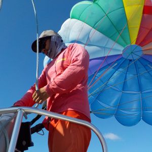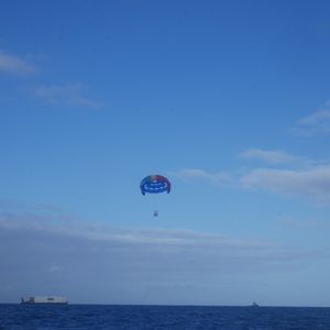 わたしの弟、夫、息子7歳、娘5歳の5人で参加しました。お迎えがちょっと遅れていて5分待ってて来なかったらその場で電話してください。っていうことだったのでこないこない。とドキドキしていたらちょうど5分後に来てくれて安心しました。パラセイリングは5歳の娘が怖がるかもしれない。という反対意見もありましたが、ボートでは緊張気味でしたが、パラセイリングはものすごく楽しかったらしく、笑顔であと100回したいって息子は明日もしたい‼️って言うくらいでした。わたしは高所恐怖症でもありちょっと不安でしたがとんでもない全然平気。天気も良くすごくいい眺めで気持ち良くすごく楽しかったです。