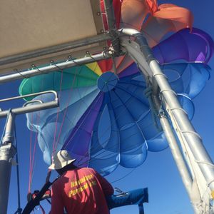 心配性なので、申し込むまでにかなり迷いましたがやってみて本当に良かったです!私達を含め4組のお客さんと一緒でした。スタッフがすごく面白い人で楽しませてくれて、緊張が解けたところでいざパラセーリング。90メートルを選びましたが、全員同じロープを使用していました。空中にいる間は、30ドルと有料ですがスタッフがたくさん写真を撮ってくれます。貴重な経験ができて最高の思い出になりました!