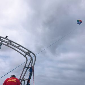 思い切って150mで申し込みました。すーと上空に上がって行き、かなり高く感じましたが爽快でした。家族3人で飛ぶことができ、いい思い出になりました。酔い止めを飲んで乗りましたが息子は少し船酔いをしていました。しかし、全員が終わって帰るときに2頭のクジラを見ることができ、船酔いも完全に忘れていたようです。とてもラッキーな体験をしました!