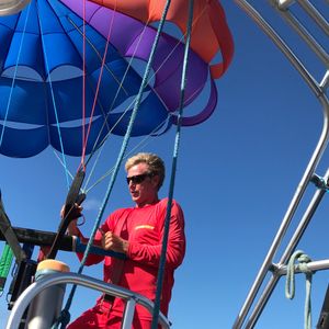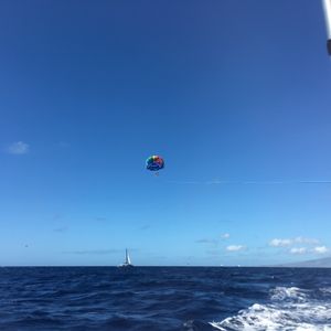 順番に二人ずつパラセイリングをしたのですが、他の人が上に上がっている間、クルーの方がジョークを言うなど盛り上げてくれてとても楽しかったです!上からホノルル一望を眺め、とてもきれいで最高でした!少し揺れるので、酔いやすい人は、薬を飲んだ方が良さそうです
