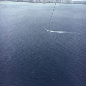 This was awesome. Glad I did it. Nearly all the people on my boat were vomiting from motion sickness, even the girl that flew tandem with me as we were in the air. There is a lot of to-ing and fro-ing as each duo has their turn parasailing. You get about 10mins up there but you're on the boat for an hr while everyone else has their turn. I loved it