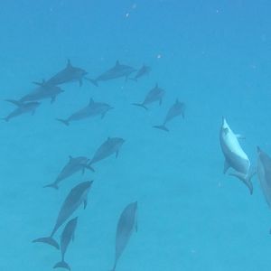 早朝ホテルでピックアップされた後、バスで向かうまで、ツアーのフォトグラファーと運転手さんからツアーの説明を受けました。この日は参加者がかなり多く、バスが2台に別れているとのことでした。船には口コミにあったようにかなりハイテンションなガイドさんたちがいて、終始楽しませてくれました。イルカは残念ながら一度しか見られなかったです。人が多すぎてガイドさんと一緒に泳ぐのも必死でした。もう少し人数が少ない時に参加したいと感じました。それでも全く見れないということもなく、イルカが自分の真下を通っていくのを見れた時は本当に嬉しかったです。シュノーケリングはよく写真で見るようなカラフルな魚という感じではなかったし、ウミガメにも出会えなかったけれど、たくさんのお魚に囲まれて泳ぐのが初めてでとても楽しめました。少し船酔い気味で最後は気分が悪かったですが、スライダーやチーズバーガーも楽しむことができました。サップなどのアクティビティは人が多かったからなのか、全く案内されず、スライダーしか用意されていませんでした。やりたい場合はきちんとガイドさんにお伝えしておくと良いのかもしれません。かなりあっという間に感じましたが、個人的には体力的にあのくらいで限界だったので納得することができましたが、もっとゆっくり時間をかけて休憩も挟みながら海を楽しむことができるツアーがあってもよいのかなぁと思いました。