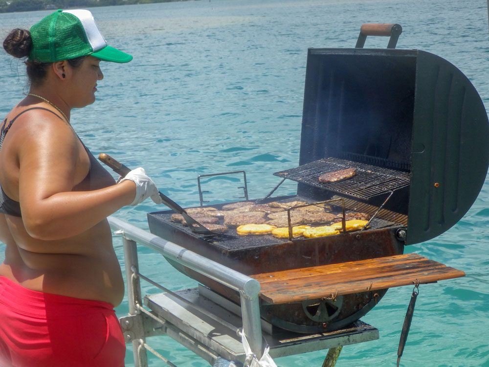 ・BBQランチがめちゃくちゃおいしい!船の上でハンバーグ焼いてます!