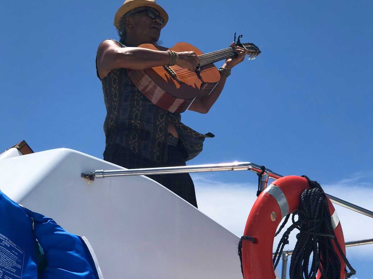 スタッフが船の上に上がってギター生演奏で歌ってくれ、