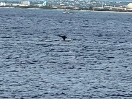 大きい鯨には、会えませんでしたが、、赤ちゃん鯨でしょうか?!何回も尻尾が見えたり、体の一部が見えたり良かったです。