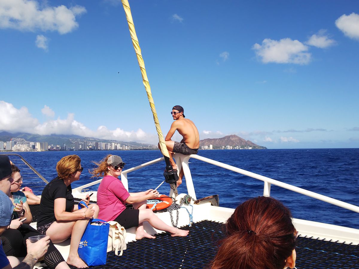I was able to see whales quite well. However, it may depend a lot on luck. When I went, it seemed that there was only one whale nearby, and I saw it come up to the surface a few times. There are times when you can see multiple whales. You can't get too close to the whales (it seems that getting too close is prohibited). Also, when they come up for air, they dive back down, so you have to wait for a while for them to surface again. The whales are great, but the rainbow was very beautiful, and you can also see Waikiki Beach from the ocean side. That view was nice as well.