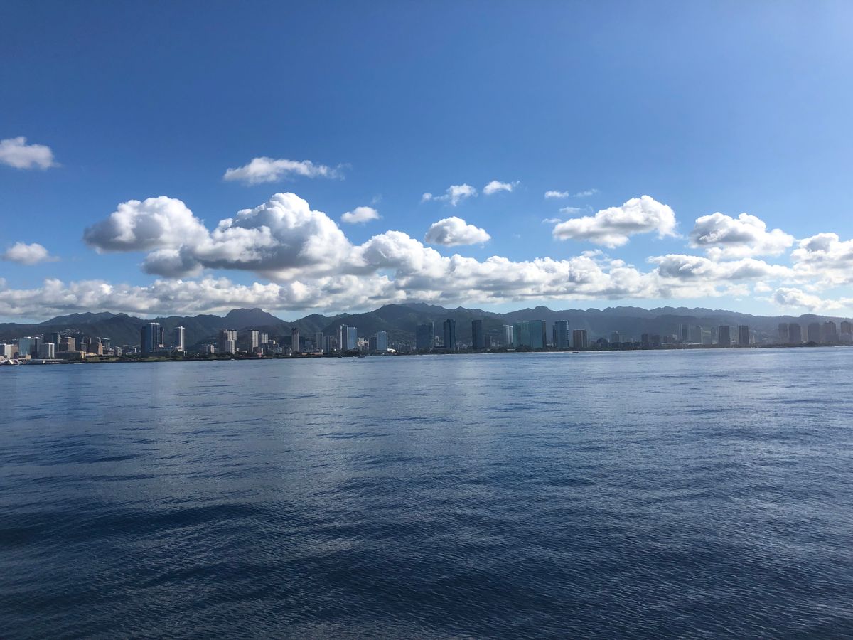 天気も良く、クジラが見えない間もホノルルの景色がとても美しくて飽きませんでしたが、結構波が高くて大きく揺れる事があったので、乗り物酔いしやすい方は薬必須だと思います。(私は平気なので、終始とても楽しかったです!)