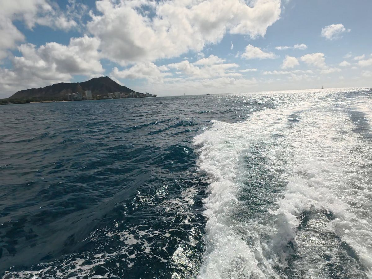 娘が酔いやすかったので潜水ボートまで船移動が心配だったが、実はこの船移動が思っていたより高速で爽快。沖からオワフ島を見れたし満足感が半端ない。楽しかった。