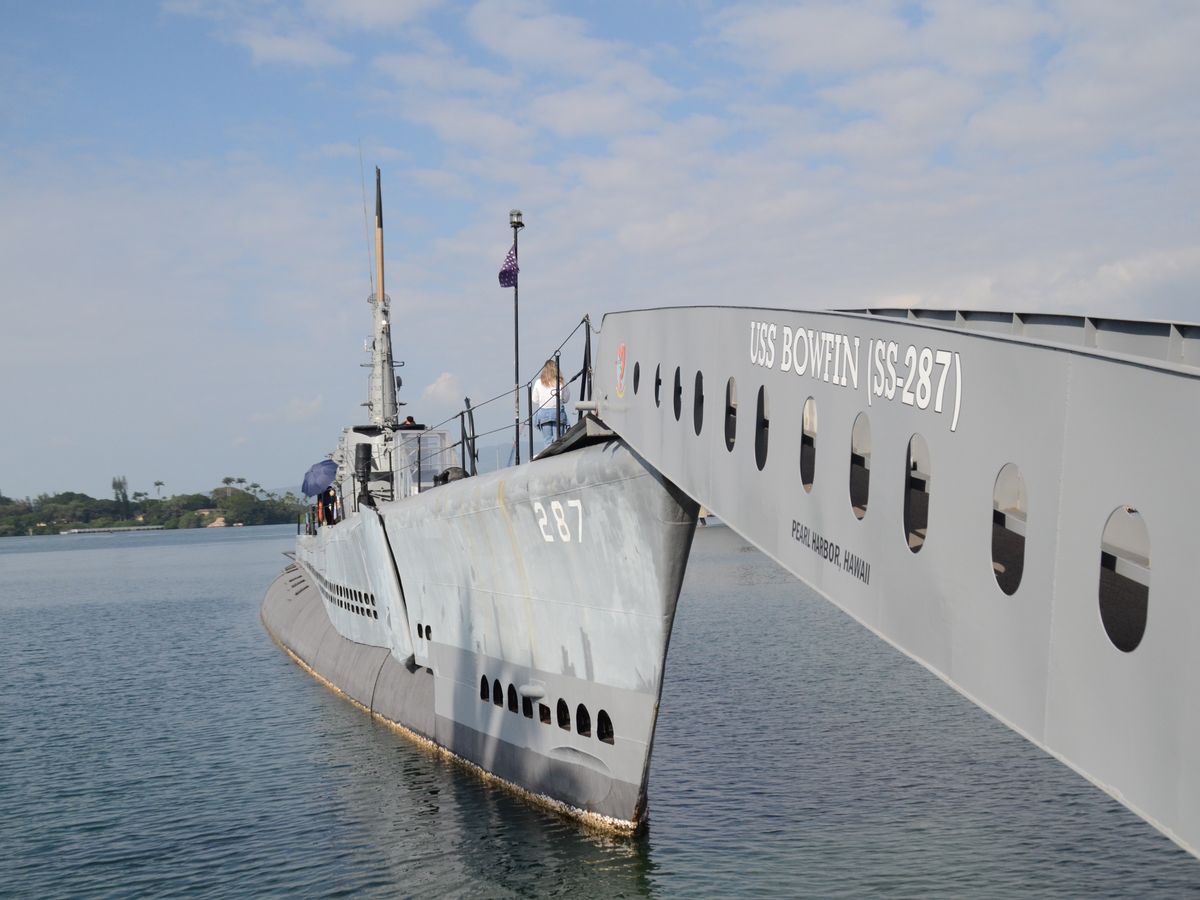 2. Bowfin Submarine. Walk north and enter using the QR code. There is a dedicated guide device here.