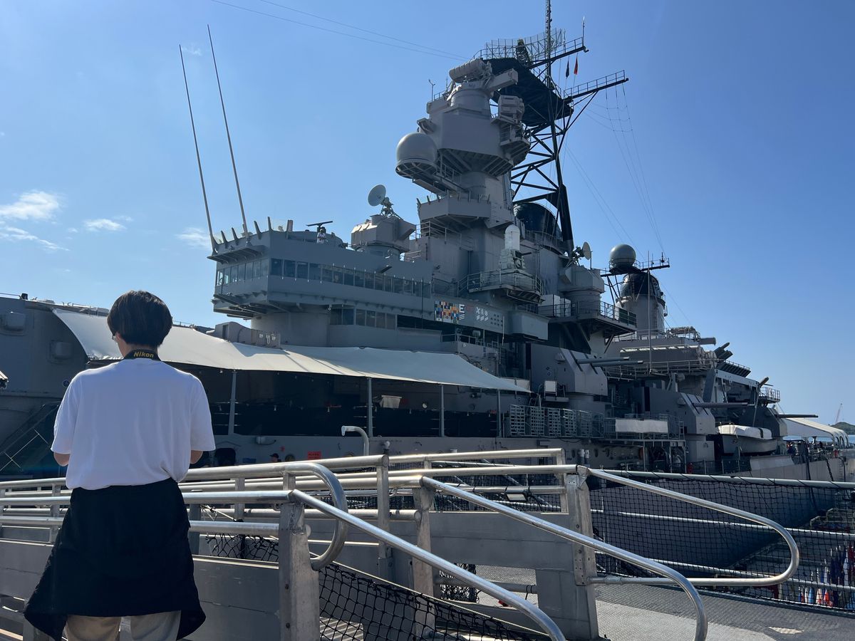 4. Get off at the USS Missouri and enter using the QR code; there is a Japanese guide available.