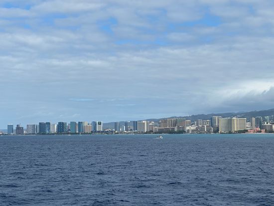 We each went to the third deck and the rooftop deck, ready for the whale watch. Squinting our eyes and listening to the announcements over the ship's intercom, we soaked up the sun while looking at the streets of Waikiki and Diamond Head, but the whales didn't appear for quite a while. After turning back, we ended up spending over two hours on board without seeing any whales this time. However, it was a fun time. On the way back, we received tickets to board again, and I'm looking forward to the next time!
