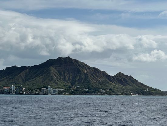 I couldn't see any whales, but I was very impressed by Diamond Head from every angle. First of all, even though it was a large ship, it was about four times faster than I imagined. Because of this, when I climbed to the top of the ship, the wind felt really nice, and the weather was good, which made me feel very refreshed. The ship traveled from the departure point all the way to the back of Diamond Head and then returned, allowing us to see Diamond Head from various angles over the sea.