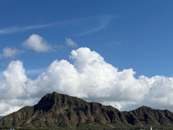 クジラは見ることができませんでしたが,ダイヤモンドヘッドはあらゆる角度から見ることができ,とても感動しました.まず,大きな船であるにも関わらず,その速さは想像の4倍ぐらい速かったです.そのため,船の屋上に登ると風がとても気持ち良く,天気も良かったため,とても爽快な気分になりました.船は出発地点から,ダイヤモンドヘッドの奥まで進み,折り返して帰ってくる航路であったため,海上から様々な角度のダイヤモンドヘッドを見ることができました.
