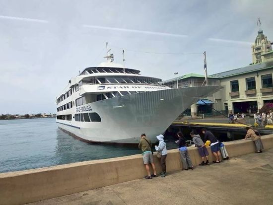 スターオブホノルルに乗船してホエールウォッチ参加しました 残念ながら当日は見れませんでした。8:45集合でしたがホテルを早めに出てUberで 妻が船酔いが嫌なのでスターオブホノルルにしました