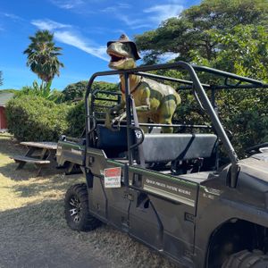 体験するにあたり色々と調べて行きましたが、とにかく楽しかった!サンダル不可とあり、わざわざスニーカーを現地で調達しましたがサンダルの方もいました。マスクやバンダナがあると良いとありましたが、クアロアランチの名前入りのバンダナをいただきました!全員ヘルメットとゴーグルを貸していただき装着。本当に2時間走るので先にトイレを済ませておく事。確か5歳〜乗車可能とありましたが、2列目の席の真ん中に座らせてしっかりとシートベルトをし、走行中は押さえててあげれば乗れると思いますがトイレに行けないのと引き返せないので慎重に考えた方が良いですね。途中、雨が降って来てより楽しさが増して、水溜まりに突っ込んだり急な下り坂を飛ばしてみたり。年配ののご夫婦が付いて来れずスタッフの方が運転を交代していました。