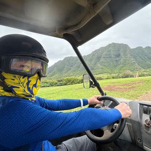I didn't expect to get covered in an incredible amount of dust while riding the four-wheeler, but it turned out to be a great memory. It was fun to explore the beautiful views at Kualoa Ranch. I was a bit disappointed that there was only an English guide available.