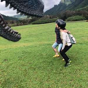 Actually, in the past, my son was too small for the buggy, and I lacked confidence in moving around smoothly in the morning, so I had been avoiding Kualoa for a long time... After much deliberation, I decided on the Raptor tour, even though horseback riding and just a movie tour sounded good too. Since I was only 18 and didn't have my license yet, my mother ended up driving.