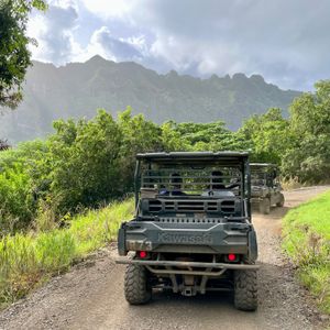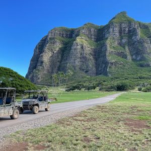 I thought there would only be English-speaking staff, but there were staff members who could communicate in Japanese. During the activities, there were only English-speaking staff, but it wasn't a problem. The bumpy roads, hills, and breathtaking views were truly amazing. We also had time to take photos at a movie filming location, which was an irresistible activity for movie fans. This was my fourth trip to Hawaii, and it was my first time at Kualoa Ranch, but I can't believe I hadn't gone before; it was such a fantastic place and activity. I would love to ride a buggy the next time I visit.