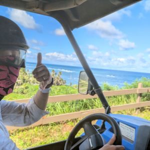 The buggy experience, while enjoying the filming spots and the grandeur of Hawaii, was incredibly fun. Unfortunately, the guide's stories at each photo spot seemed very interesting (the foreign guests were laughing and interacting a lot), but they spoke so quickly that our phones were of no help. If we had understood, it would have been 200% more enjoyable. Still, it was nice that the guide made an effort to communicate with us through gestures. Next time, I hope to at least understand some American jokes!