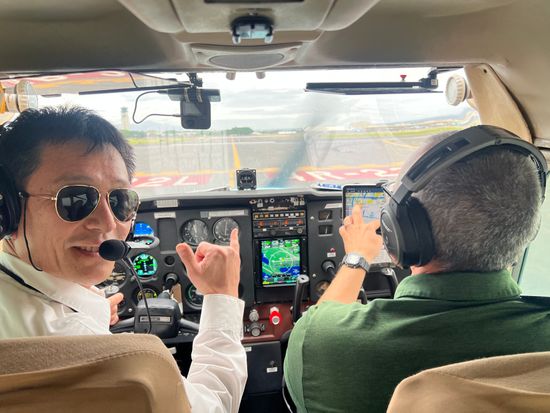 I joined a Cessna flying experience at my husband's request. It was organized by a company run by a Japanese person, and they offered a plan with a Japanese guide. Even though I can't speak English, I had no worries at all and was able to participate with peace of mind.