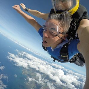 It was my first experience skydiving. I participated in a tour during a student trip. I was able to have an exhilarating experience in the extraordinary setting of Hawaii, filled with tension and excitement. The instructor was also kind and managed to break the ice with humorous lectures for the nervous participants. I definitely want to experience it again.