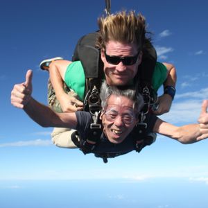We went to Hawaii for our honeymoon, and my husband wanted to go skydiving. I’m not good with heights, but I jumped on my birthday in Japan time. Once I was in the air, it wasn't scary at all; it was really fun, and the weather was great with beautiful views! The instructor didn't speak Japanese, so we didn't communicate at all, but the cameraman spoke a little Japanese and was really cool and fun, which made the experience enjoyable and helped me relax while jumping.