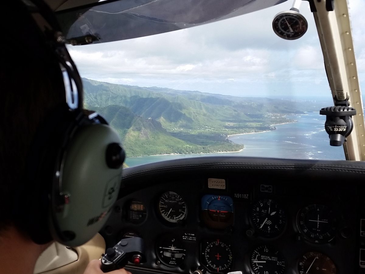 My husband and I did the 1 hour single engine tour. My husband sat up front for the lesson and I sat in the back. Our first thought was that he would get to steer a little bit and get to ask some questions and we'd get a nice private island tour. Nope! He got to take off, fly around the island and even land all by himself. Granted, the instructor was right by his side the whole time, guiding him, telling him where to fly, adjusting things for him along the way and answering any questions he had.