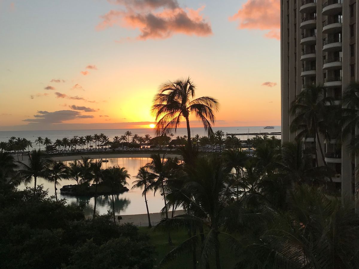 You can see a different view of the Waikiki hotels and Diamond Head from the sea. Enjoying a toast while watching the sunset can be an amazing experience, especially if the weather is nice. The staff varies each time, and their service can depend on their personality, so it can be hit or miss. It's a bit disappointing that the background music isn't Hawaiian, but rather upbeat rock that the staff prefers.