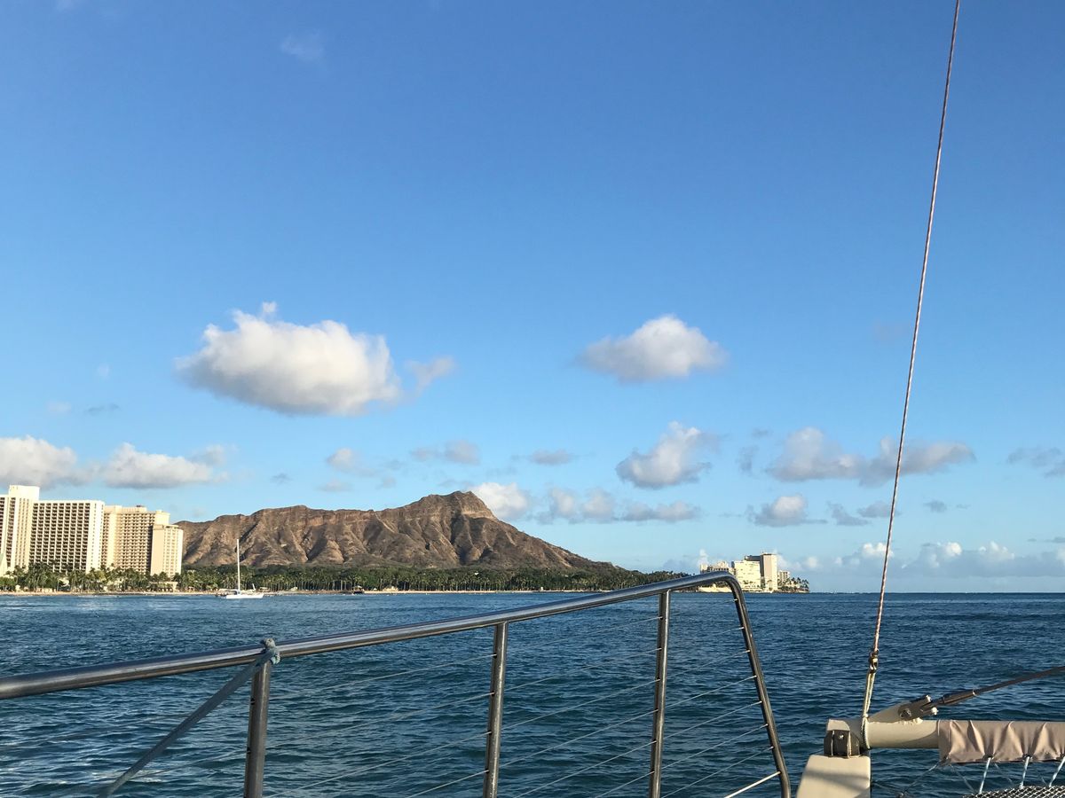 We were blessed with great weather and were able to see a truly beautiful sunset. Surrounded by a fun captain and mostly non-Japanese guests, I had a wonderful time even though I don't understand much English. The boat didn't sway as much as I expected, and no one got wet at all. We stepped into the sea a few steps to board the boat, and then we were barefoot inside the boat the whole time. You can see a different view of Diamond Head too! I definitely want to join again if I have the chance!
