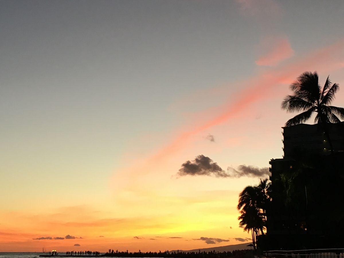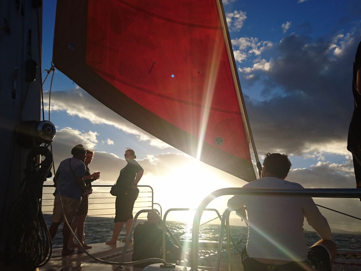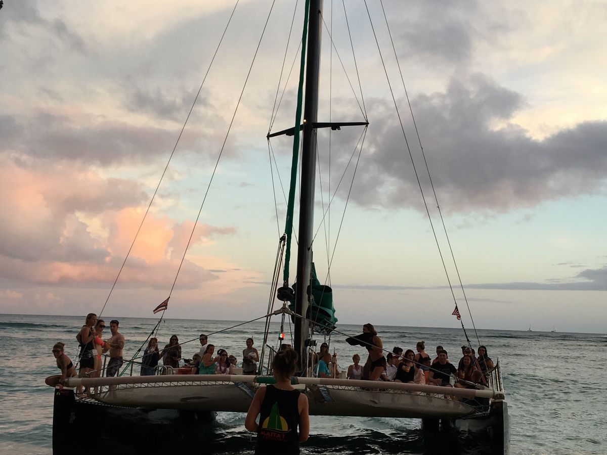 明るいうちに出航するので、青空と青い海とワイキキの景色を気持ちよく堪能!その後サンセットの美しさに感動しました!