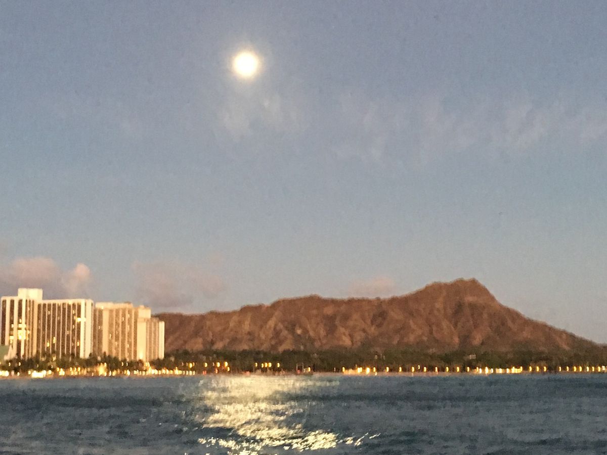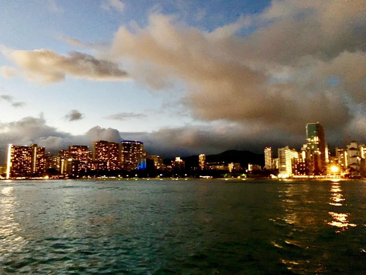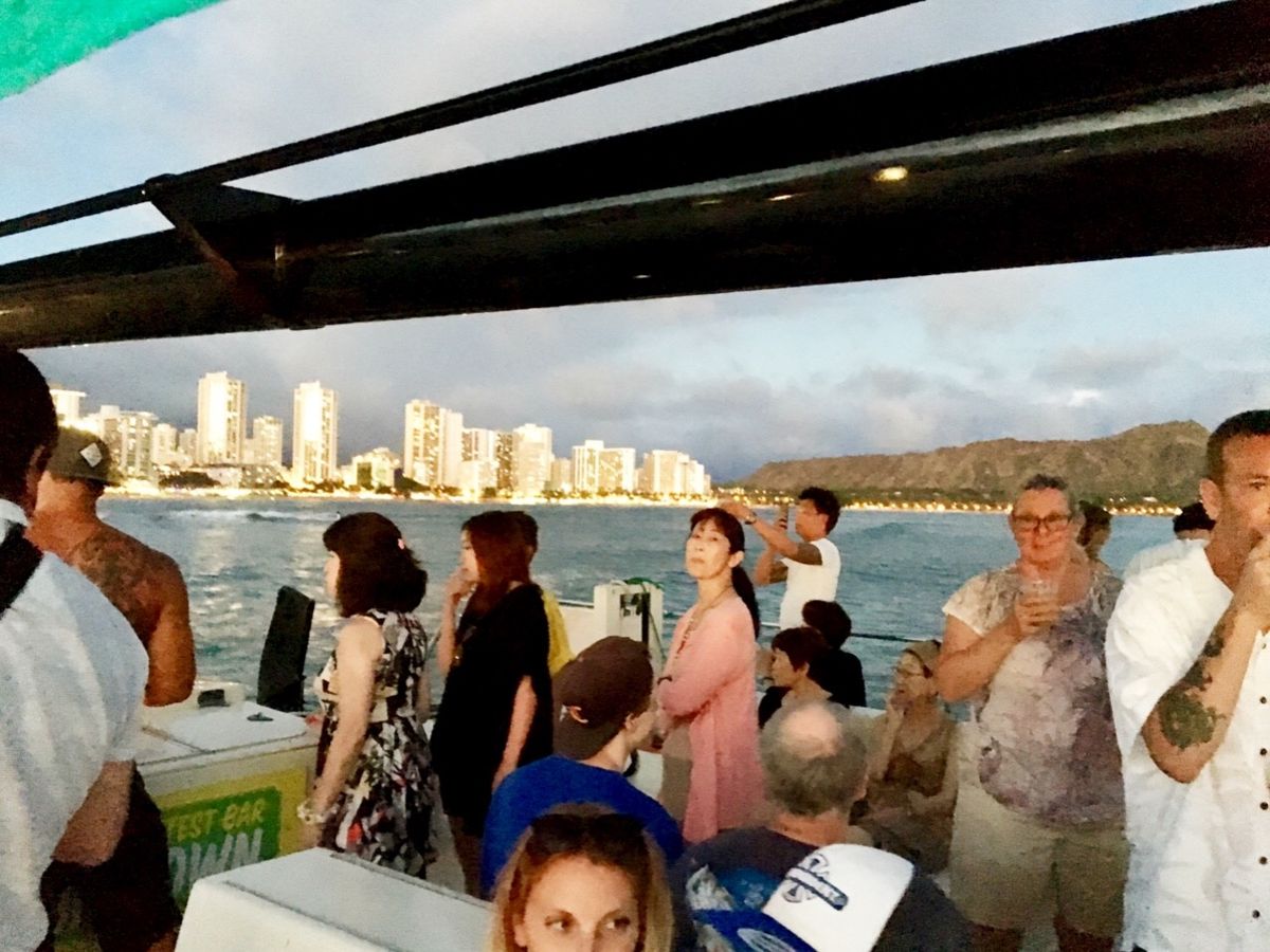 三度目のハワイ旅行で二度目のデイナークルーズでしたが前回より時間が短かつたようでした。夜景が始まる前にクルーズが終わり残念でした。
