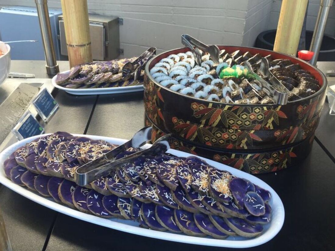The buffet was typical buffet foods with some Hawaiian additions. It was nie to taste new flavors but, the meats were overcooked and dry. Typical steam tray buffet. There were some nice vegetable options and the desserts were good. I don't recommend the poi. Try it somewere else.