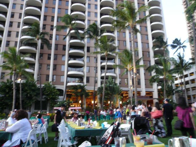 会場に入るのにこれでもかというくらいならんで待たされた。はいるところで1グループごとに写真をとっていたのでそれが混雑の原因と思われますがもうちょっとなんとかならないものでしょうか?食事もホテルで出す料理なのでもうちょっとなんとかならないのでしょうか?まずかったです。ショーの内容もシェラトンカイウラニのショーの方がハワイの歴史をたどっていて面白かったです。全体的にいまいちでした。