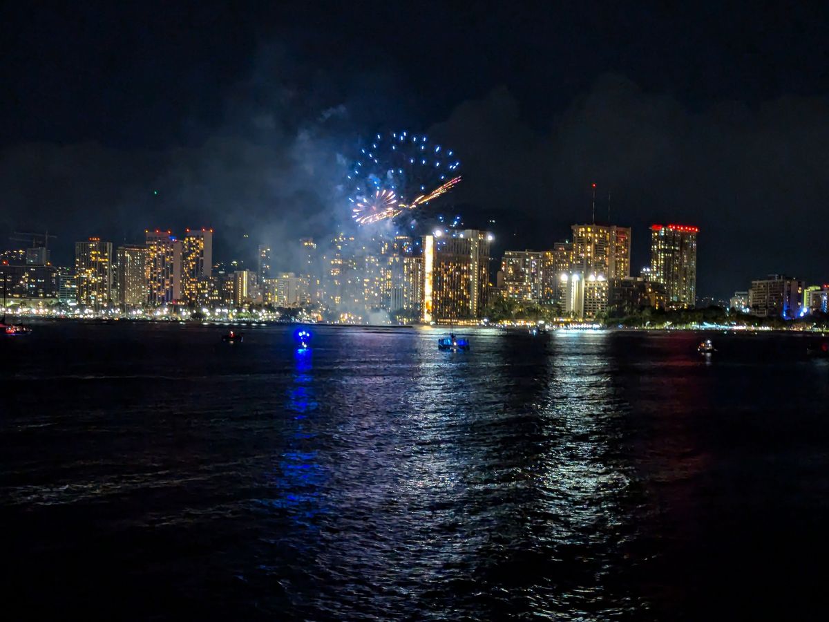 Celebrating my wife's birthday on the Star of Honolulu! It was organized from the time we were picked up at our hotel by bus to being seated at our reserved table. The ship is divided by what package you purchase (excellent idea). We got a chance to watch fireworks from the Hilton Hawaiian Hotel beach. But was wonderful was the breezes off the ocean in addition to the wonderful sunset while you have your meal. Your meal is brought to your table by the fantastic wait staff. Live music is performed while dining. Later, there is a hula/chaka show. Before you know it, the night is over. My wife received a special birthday cake that was light as a feather and delicious. We ended our stay in Oahu with this dinner cruise. Best time spent. Would do it again just for the sunsets.