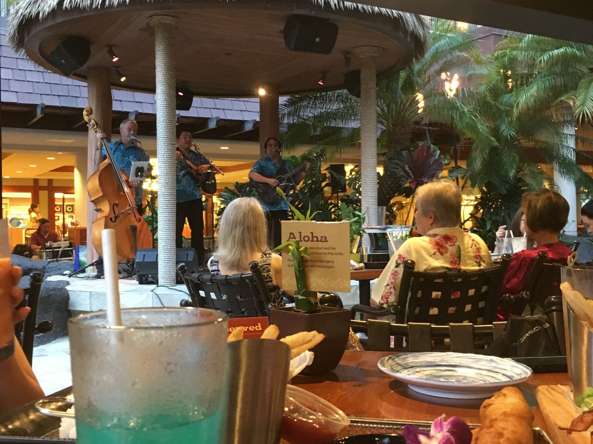 We were seated for the dinner buffet in the order we checked in. Overall, the food was delicious, and during the meal, several people were invited to participate in a basic hula lesson, and my husband was called up with a "Come on!" and seemed to have a great time.