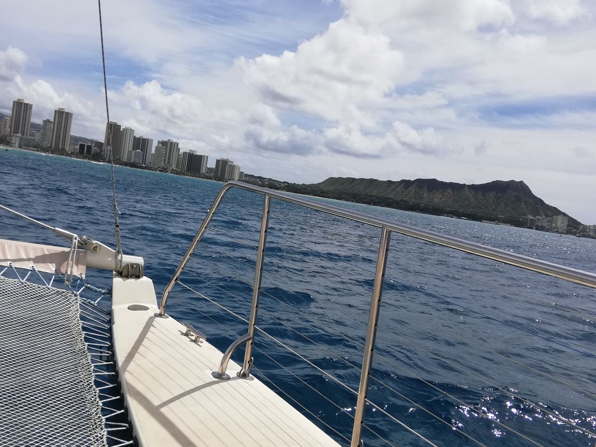 It's been years since I last went sailing in Waikiki. No matter how many times I ride, it always feels great. It seems that not many Japanese people go, but once you try it, you'll definitely be hooked. The view of the Waikiki hotels and Diamond Head from the ocean is completely different from seeing it from land. This time, the weather was great, and the wind was perfect—it was the best day ever.